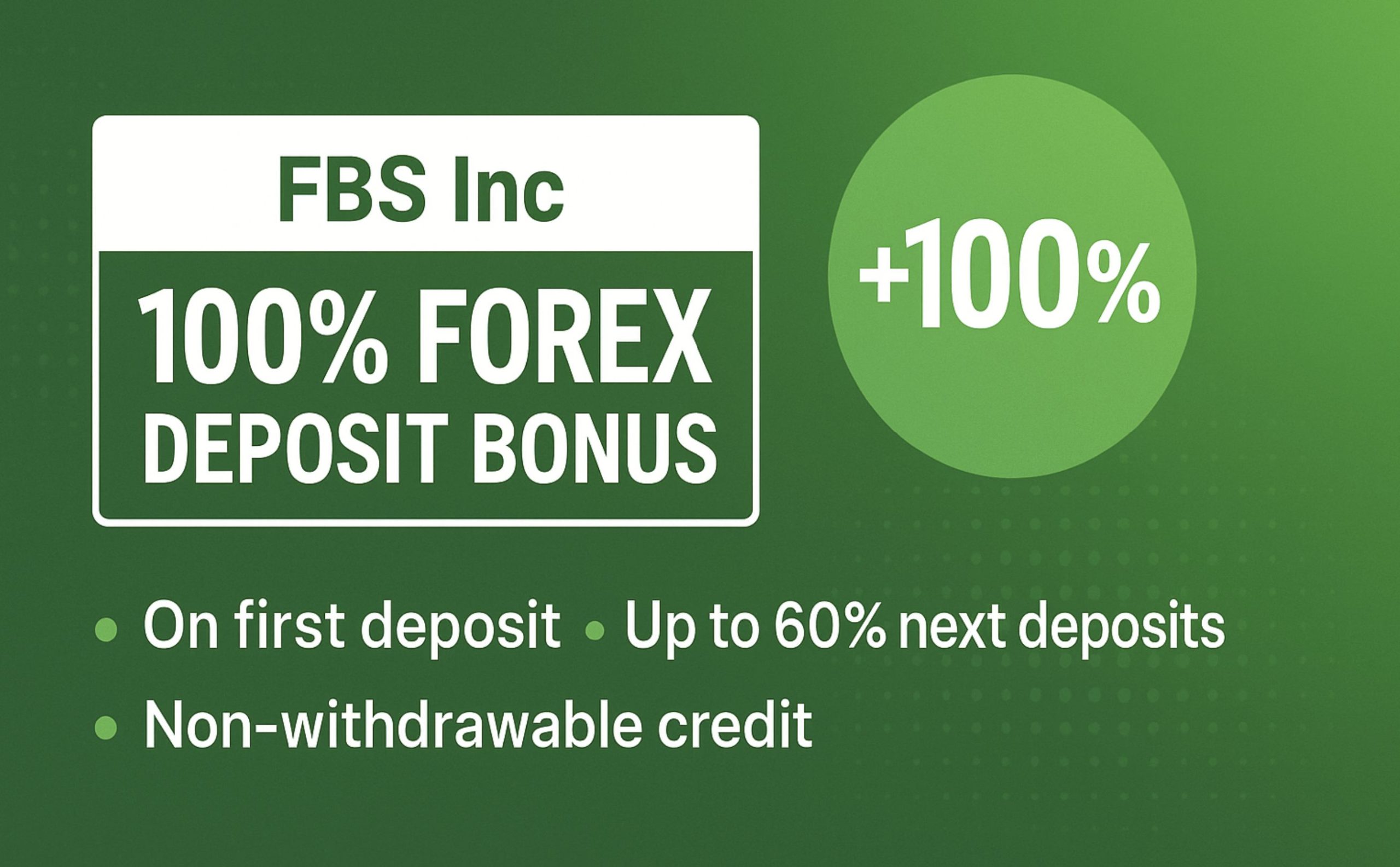 FBS credits 100% on the first deposit, then applies a