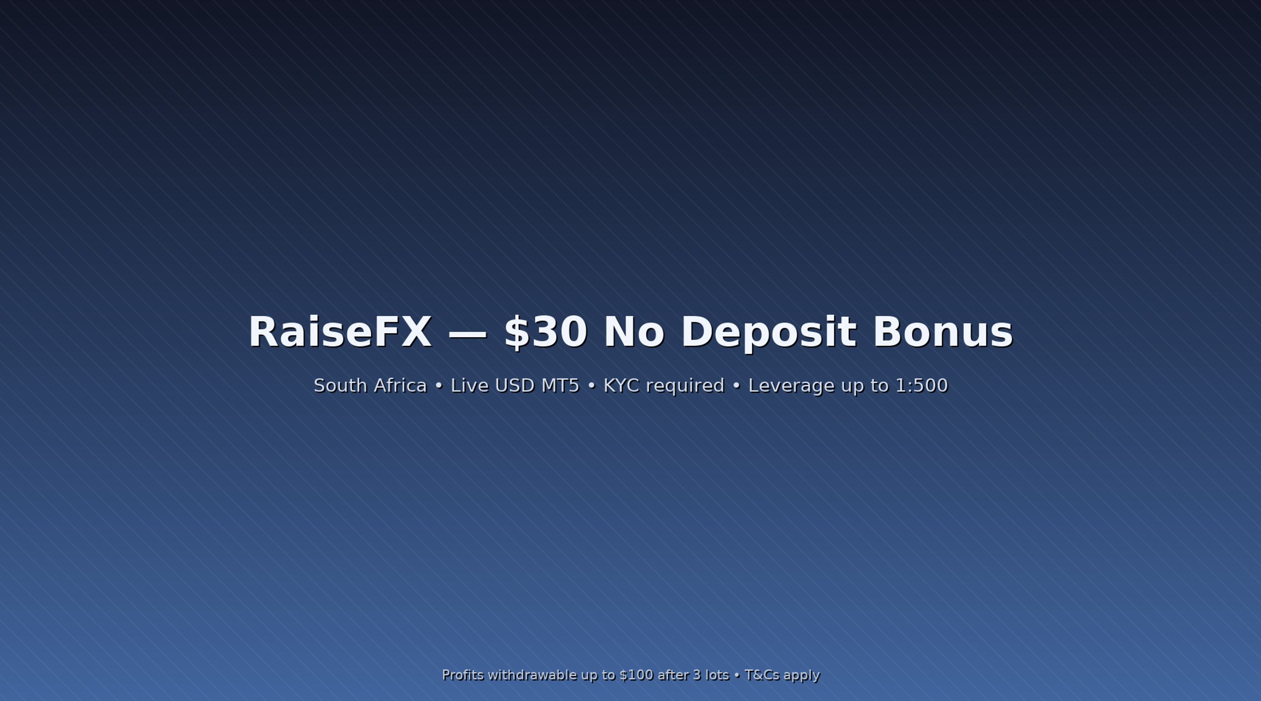 A reputable tracker also recently summarized the same RaiseFX South Africa $30 No Deposit Bonus with simple steps (sign up, complete KYC, open Live USD MT5; bonus credited upon approval).